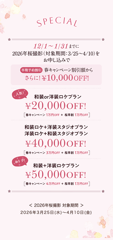 \ 今なら桜前撮り 最大5万円OFF!! /