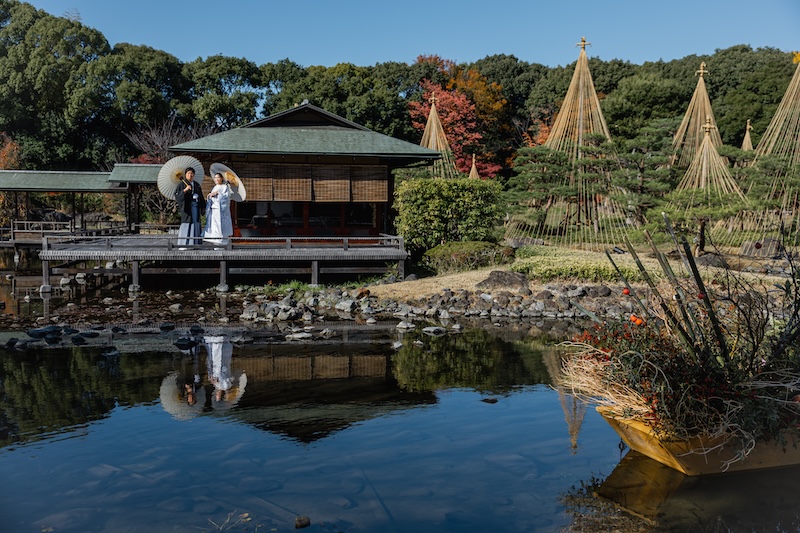 広々とした日本庭園の景色の中で撮影ができるため