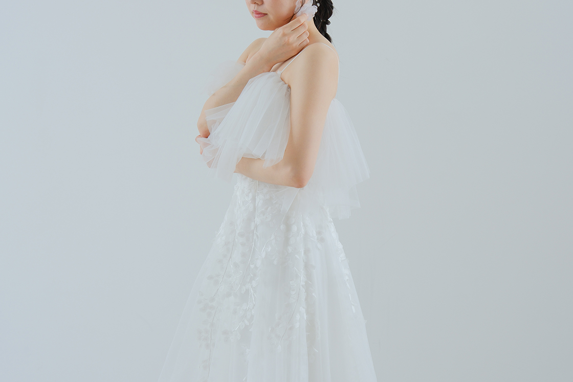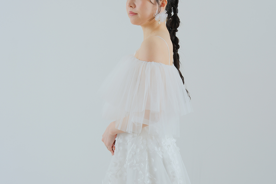 軽やかなチュールを贅沢に重ねた、華やかでロマンティックなボレロ。