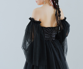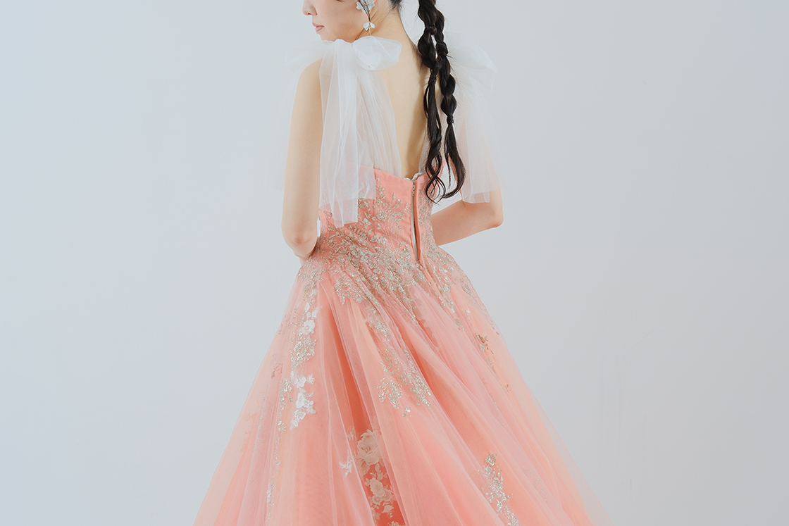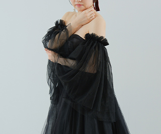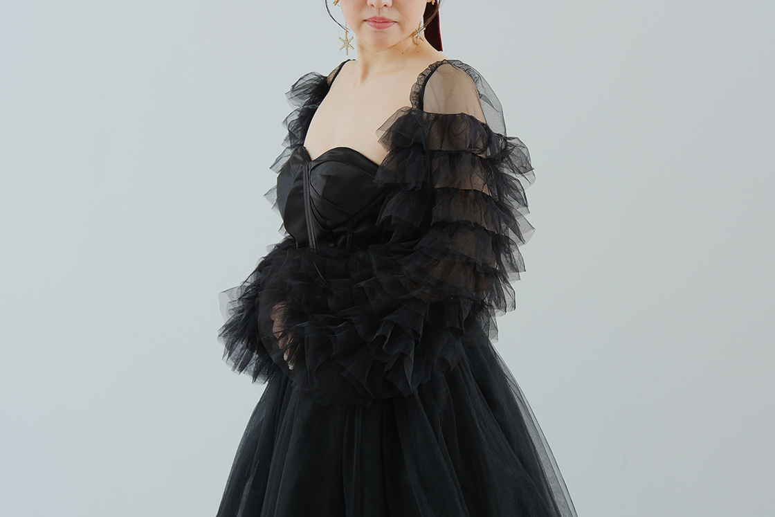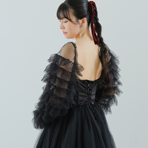 透け感のあるチュールとフリルが華やかなデザイン。
