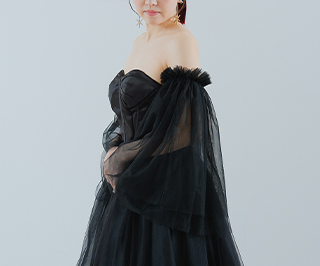 透け感のある黒が肌の色を引き立て、上品さと大人の魅力を同時に演出します。