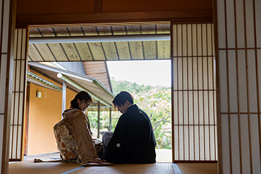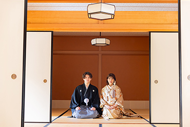 日本庭園周辺にはたくさんの紅葉樹があり、婚礼衣装の映える秋の紅葉シーズンの撮影が特におすすめです。