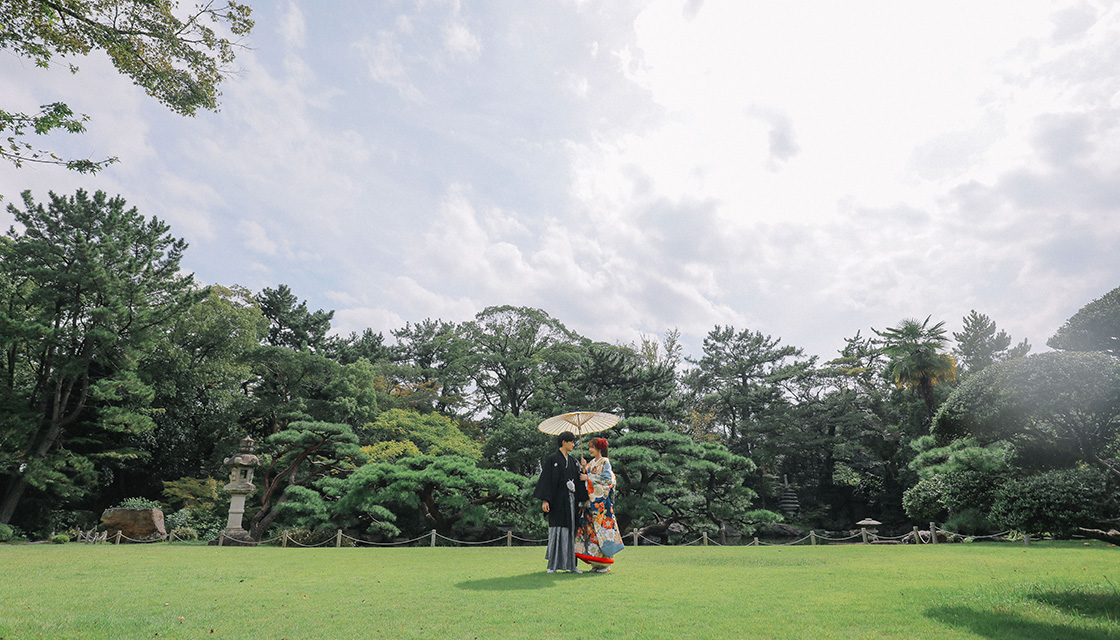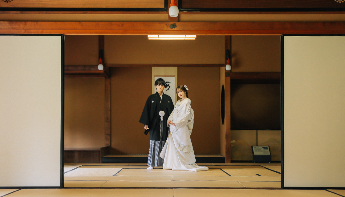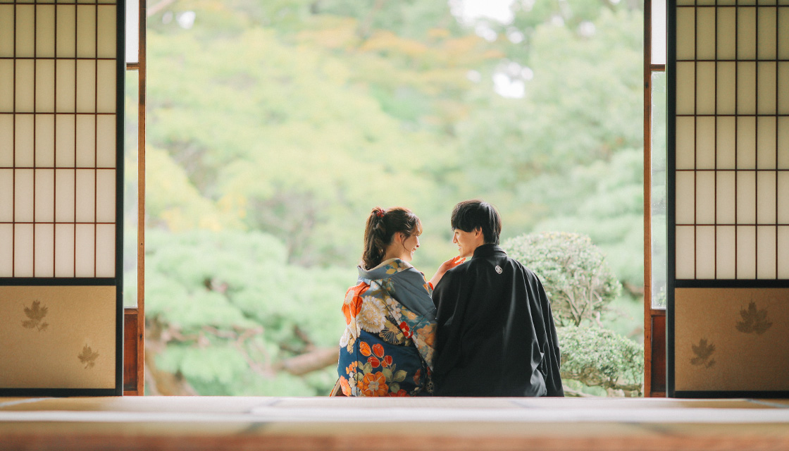 和装の場合は和室と庭園で、洋装の場合は洋館と庭園で撮影致します。
